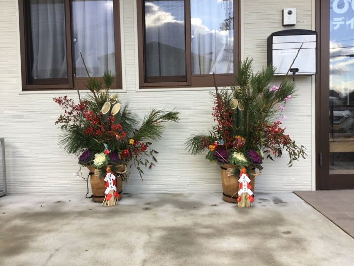 年末、ご利用者様全員で、新年を迎えるにあたり門松を作成していただきました。年々素晴らしい出来栄えとなり、今年もプロ顔負けの作品となりました。門松にあやかり、今年一年ご利用者の方、ご家族様、職員及び、樋本デイサービスに関わる全ての方々の無病息災を心より願っております。